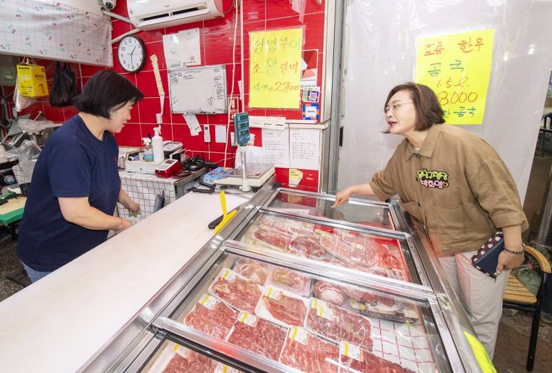 이날 박 구청장은 이촌시장, 용문시장, 후암시장을 비롯해 로얄상가, 삼성테마트, 순헌황귀비길 골목형상점가 등을 돌며 상인들과 인사를 나누고 온누리상품권으로 과일·한과·추석용품 등을 구매하며 전통시장 장보기에 앞장섰다. 또 물가 상승과 매출 감소 등 상인들의 고충을 경청했다.