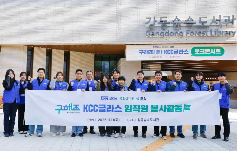 이날 활동에는 KCC글라스 임직원과 국립생태원 관계자를 비롯해 유튜버 ‘새덕후’와 구독자 등 30여명이 참여했다. 참가자들은 강동숲속도서관 유리에 조류충돌방지스티커를 부착하고 인증 현판을 설치했으며 야생조류 보호의 중요성을 알리는 토크 콘서트도 함께 진행했다.
