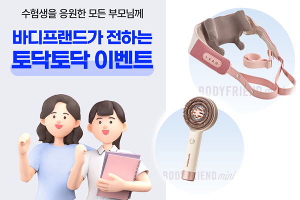 바디프랜드 관계자는 “수험생과 가족 모두가 휴식하며 회복의 시간을 가질 수 있도록 기획한 프로모션”이라며 “바디프랜드와 함께 몸과 마음의 긴장을 풀고, 온가족의 건강을 챙기는 계기가 되시길 바란다”라고 강조했다.