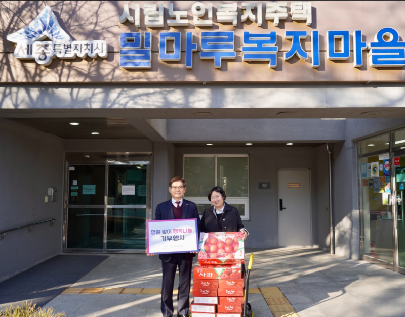 이번 활동은 재단이 지속해서 추진 중인 사회적 가치 실현과 지역 상생을 위한 사회공헌 프로그램의 일환으로, 재단 임직원들은 캠페인 당일 세종전통시장에서 직접 구입한 신선한 과일 등 명절맞이 물품을 정성껏 마련해 노인복지주택인 ‘밀마루복지마을’을 찾아 어르신들께 전달하고 명절의 훈훈한 정을 나눴다.