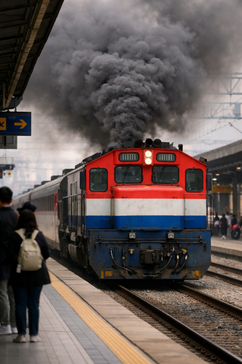 에스컬레이터를 타고 7번 플랫폼으로 내려가는 동안 상황은 더 악화됐다. 정차 중인 디젤 열차에서 뿜어져 나온 배기가스가 통로를 따라 역류하듯 올라오며, 숨을 쉬는 것 자체가 부담스러울 정도였다. 순간적으로 호흡을 멈춰보려 했지만, 열차에 탑승하기까지 이어지는 동선 내내 자욱한 매연을 완전히 피하기는 사실상 불가능했다.