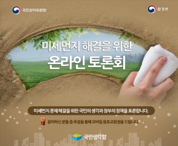 이번 미세먼지 온라인 토론은 국민권익위에서 운영하는 국민소통의 장인 '국민생각함' 특별관에서 진행된다.