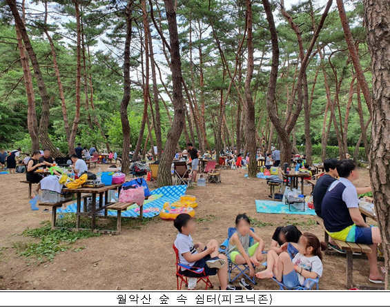 국립공원 숲 속 쉼터는 국립공원 내 저지대 유휴부지를 활용해 조성된 당일형 휴식공간으로 다인용 식탁, 차양막 등의 편의시설을 갖추어 누구나 예약이나 비용 부담 없이 자유롭게 이용할 수 있다.