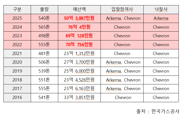 구자근 국회의원(사진)이 한국가스공사로부터 제출받은 ‘최근 10년간 부취제 구매 입찰 현황’에 따르면, 공사는 Arkema(프랑스) 또는 Chevron(벨기에) 회사의 부취제를 수입하고 있다.