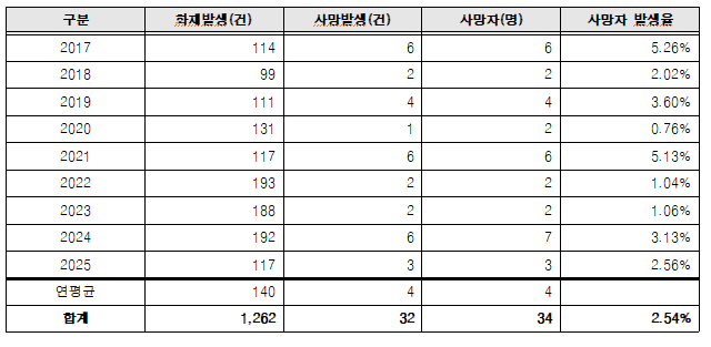 임대주택 화재 사망률은 지난해 기준 3.13%, 최근 10년간 평균 2.54%로, 일반 아파트 화재 사망률(1.3%)보다 2배 이상 높을 정도로 화재에 취약하다.