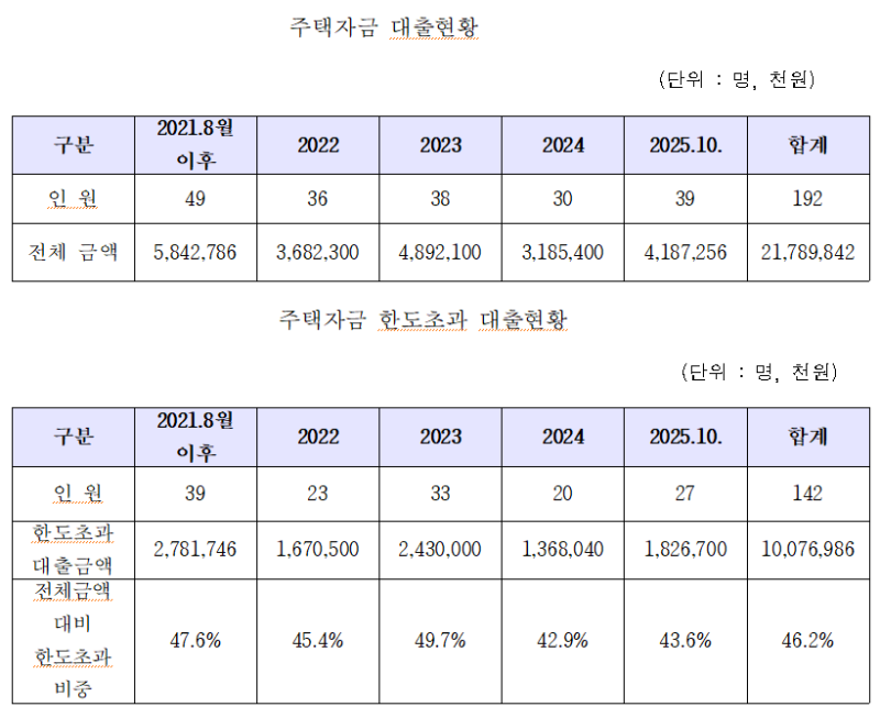 생활안정자금 256억, 주택대출 101억… 지침 위반한 한도초과 대출