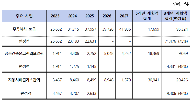 탄소배출이 많은 수송·건축 분야 핵심 사업의 편성률도 낮았다. 무공해차 보급사업은 계획의 75%, 공공건축물 그린리모델링은 48%, 자동차 배출가스 관리사업은 46%를 편성하는데 그쳤다.