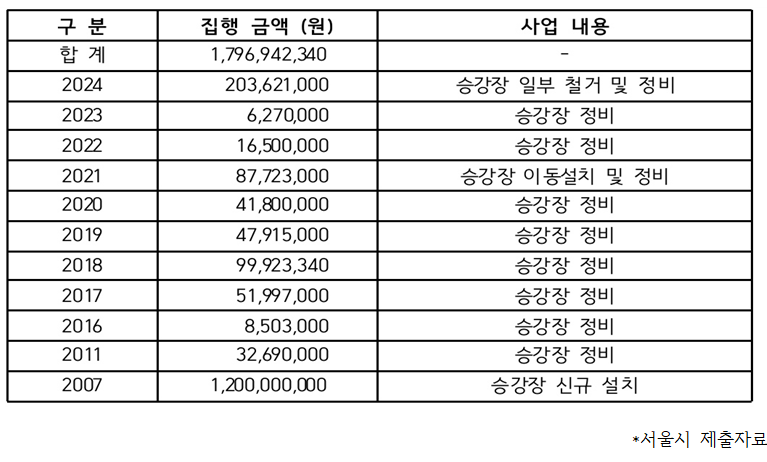 서울시 제출자료에 따르면, 그동안 서울시는 한강 수상택시 사업을 위해 공용승강장 유지관리 예산을 2007과 2011년, 그리고 2016년부터 2024년까지 시비 총 17억 9,694만원을 쏟아부은 것으로 드러났다.