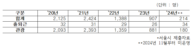 작년 11월 운영중단 전까지 10개월간 전체이용객 214명, 출퇴근용은 고작 34명