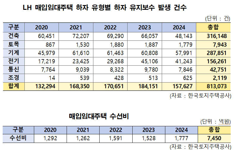 LH 매입임대 연평균 16만여 건 하자 발생