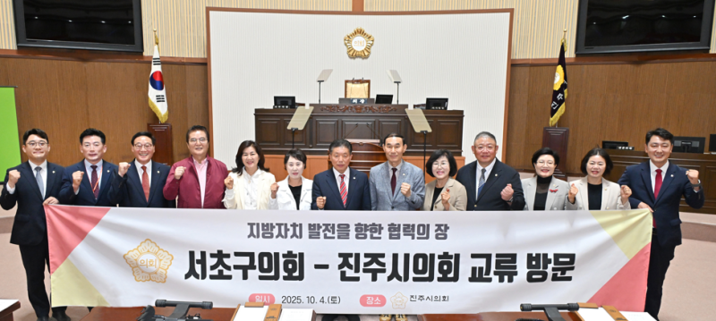 서초구의회(의장 고선재) 의장단은 4일, 진주시를 방문해 지역 대표 축제인 ‘진주남강유등축제’의 성공적인 개최를 축하하고, 두 의회 간 교류 확대와 협력 방안을 논의했다.