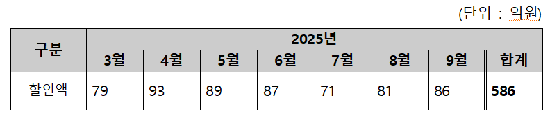 ▲중소·중견기업 보험(증)료 할인 현황(‘25.3~9월