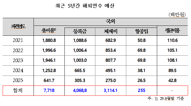 이어 정 의원은 “국민 세금으로 운영되는 만큼 연수생의 의무복무 기간을 확대하고, 조기 퇴사 시 환급 비율을 강화하는 등 엄격한 관리 체계 구축이 시급하다”며“아무리 좋은 취지의 제도라도 악용되는 사례가 거듭 발생한다면 해외 연수 제도 자체의 존폐를 검토해야 한다”고 밝혔다.