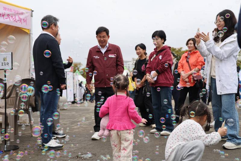 가족 단위 방문객들은 새우 목걸이 만들기, 페이스페인팅, 파크 골프 등 다양한 체험 프로그램에 참여하며 즐거운 시간을 보냈고, 아이들은 버블쇼와 새우잡기 AR게임 등에 열중하며 신나는 하루를 보냈다.