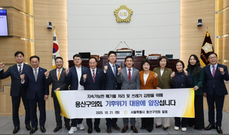 이날 본회의에서는 △회기결정의 건 △회의록 서명의원 선출 △구청장 및 관계공무원 출석요구의 건 등의 안건이 처리됐으며, 특히 이미재 의원이 대표 발의한 ‘용산구 지속가능한 폐기물 처리 및 쓰레기 감량을 위한 결의안’이 채택돼 환경 보호와 자원순환 강화를 위한 구의회의 정책적 의지를 드러냈다.