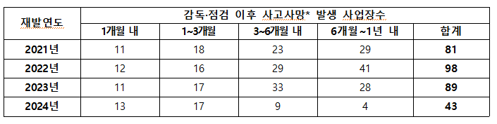 이어 박 의원은 노동부의 전체 통계를 인용하며 “매년 노동부가 점검을 마친 사업장에서 다시 중대재해가 발생한 사례가 6개월 내 수십건에 달한다”며 “이 수치는 현재의 감독 체계가 현장 안전을 실질적으로 바꾸지 못하고 있음을 보여준다”고 말했다.