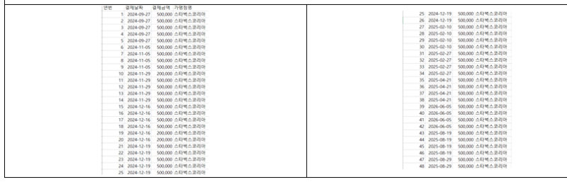 또한 2024년 9월부터 2025년 8월까지 스타벅스 선불카드 2,310만 원이 동일한 법인카드로 결제됐지만, 지급 명단과 사용 내역은 존재하지 않았다. 김 의원은 “언론 확인이 시작되자 추석 직전 직원들에게 선불카드를 나눠준 것은 보여주기식 대응”이라며 “공적 자금이 ‘빵값’과 ‘커피쿠폰’으로 쓰인 것은 명백한 사적 전용”이라고 지적했다.