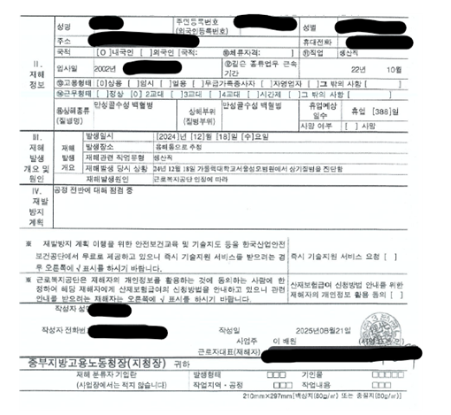 이러한 배경에는 현재 법‧제도적 한계도 있다. 산재조사표는 재해발생일로부터 1개월 이내 작성해야 하지만 노사 모두 산재신청 승인‧불승인 여부만 담긴 ‘요양‧보험급여 결정 통지서’만 받기 때문이다.