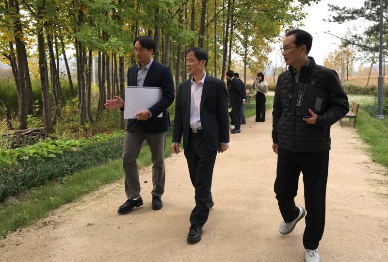 홍동곤 한강유역환경청장은 30일, 한강유역환경청과 용인시가 공동으로 조성한 ‘수풀로( 한강의 「물」과 「생태복원지」가 만나 흐르는 모습을 “수(水)+풀+로(路)” 세 단어를 결합하여 나타낸 것으로 수변녹지 조성의 성과를 주민에게 되돌려 주는 공간 )삼계리’ 현장을 방문하여 조성 현황 점검과 관리 방안을 논의했다.