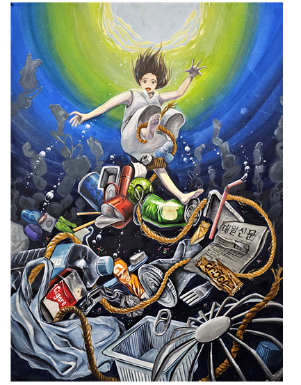 일러스트레이션 분야 일반부 대상인 ‘수면 아래의 소리’는 수면 아래 버려진 잔해와 생명의 흔적을 대비하여 사회가 처한 현실을 상징적으로 표현해 주목받았다.