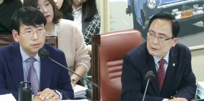 김형재 의원이 4일 열린 서울시의회 제333회 정례회 문화체육관광위원회 행정사무감사에서 서울시 홍보기획관을 상대로 TBS(교통방송) 관련 예산 집행의 형평성 및 투명성 부족 문제를 지적하고 있다.