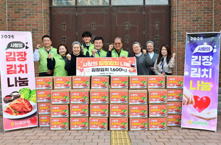 농식품 전문 매장 농협 하나로마트를 운영하는 농협유통(대표이사 이동근)은 24일 김장철을 맞아 서초구 관내 '까리따스 방배 종합 사회 복지관' 등 복지시설 단체에 김장김치를 후원했다.