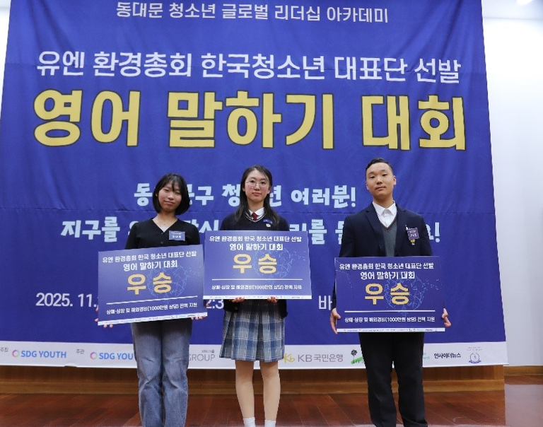 사단법인 에스디지유스 는 지난 22일 서울 동대문구 바인그룹 3층 강당에서 ‘유엔 환경총회 한국 청소년대표단 선발 영어말하기 대회’를 열고 총 3명의 청소년을 대표단으로 선발했다고 28일 밝혔다.