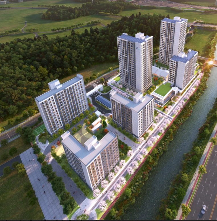 경기도 시흥시 거모동 일원 시흥거모 공공주택지구 내 A-1BL에 위치한 사업장은 총 6개동 801세대 규모로 일반 철근콘크리트 구조의 아파트 3개동과 스틸 모듈러로 지은 아파트 3개동이 혼합된 단지다. 스틸 모듈러로 지은 아파트 중 1개 동은 최고 높이 14층으로 현재 기준 국내 최고층 스틸 모듈러 아파트가 될 전망이다. 해당 사업장의 전체 도급액은 1,858억원 규모로, 2029년 준공 예정이다.