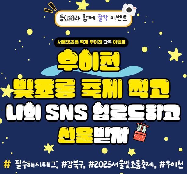 12월 12일부터 내년 1월 4일까지 이어지는 전시 기간 동안 우이천에 설치된 등(燈) 작품을 촬영해 개인 SNS에 업로드 한 뒤 이벤트 참여 카페에서 인증을 받으면 매장별 30개 한정 기념품을 받을 수 있다. 자세한 내용은 우이천변 페스타 인스타그램(@with_uicheon)에서 확인할 수 있다.