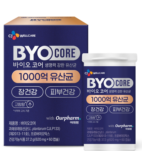 ‘바이오코어 1000억 유산균’은 3종 균주를 조합해 구성된 제품으로, 2013년 국내 최초로 개별인정형을 획득한 CJ웰케어의 핵심 균주 CJLP133와 두 종의 비피도박테리움 균주(lactis, longum)가 사용됐다. 또한 최근 주목받는 원료인 NMN(니코틴아마이드 모노뉴클레오타이드)를 함께 배합했다.