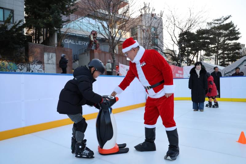 이날 일일 산타로 나선 박강수 마포구청장은 아이스링크를 찾은 20여 명의 아이들과 가위바위보 게임 등을 하며 크리스마스의 설렘을 나눴다.