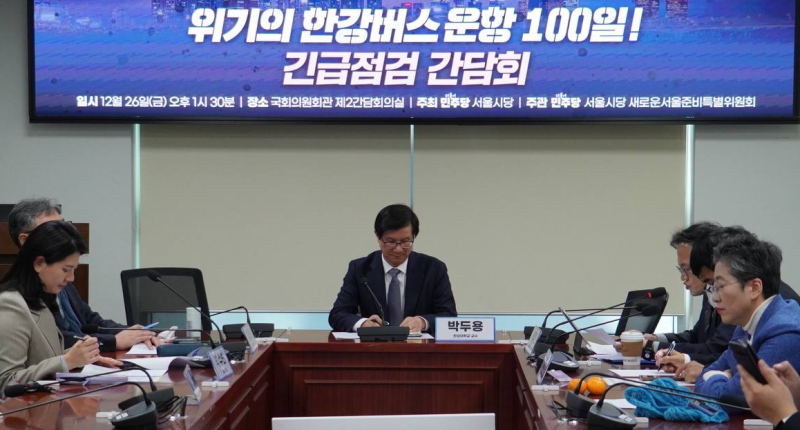 박주민 의원, ‘위기의 한강버스 100일’긴급점검 간담회 발제 과정․안전․예산․공공성에 문제.. 전면백지화 필요 “대중교통으로서의 한강버스 실패, 안전성에서도 큰 우려” 더불어민주당 서울시당 새로운서울준비특별위원회(위원장 박주민)가 12월 26일(금) 오후 1시 30분 국회 의원회관 제2간담회의실에서 ‘위기의 한강버스 운항 100일’ 긴급점검 시민간담회를 개최했다.