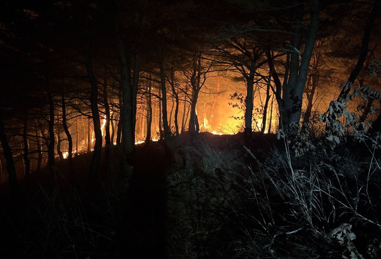 산림당국은 산불진화차량 44대, 진화인력 136명을 긴급 투입하여 산불을 진화 중이며, 산불현장에서 풍향 서북서, 풍속 8.4㎧의 바람이 불고 있다.