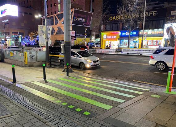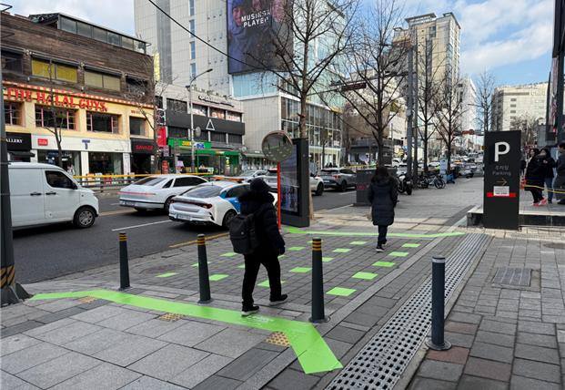이번 실험은 차량 통행과 보행량이 많은 이태원역 일대를 대상지로 선정해 이달 4주에 걸쳐 진행했다. 어떤 형태의 바닥 무늬와 시설 요소가 보행자와 운전자 모두에게 도움이 되는지를 중점적으로 살폈다. 건물 사이 차량 진출입로에서는 보행자와 차량 동선이 자연스레 겹치지만, 경계가 분명하지 않아 사고 위험이 지속적으로 제기돼왔다.