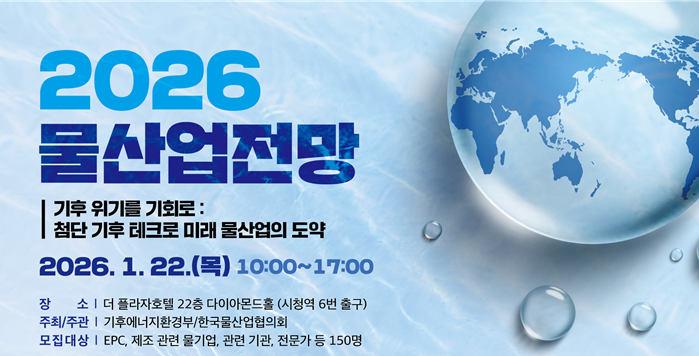 이번 행사는 ‘기후위기를 기회로 : 첨단 기후테크로 미래 물산업의 도약’을 주제로, 기후위기와 에너지·환경 전환 과정에서 물산업이 직면한 현안을 공유하고, 2026년 정책 방향과 국내외 시장 전망, 해외 진출 전략을 종합적으로 논의하기 위해 마련됐다.