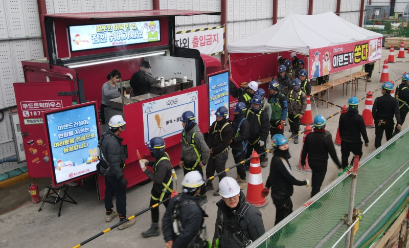 이랜드건설은 행사 기간 동안 현장 직원뿐 아니라 본사 임직원들도 함께 현장을 방문해, 현장 임직원과 협력업체 관리자, 근로자들에게 어묵차를 운영해 따뜻한 간식을 제공하며 자연스럽게 소통하는 시간을 가졌다.