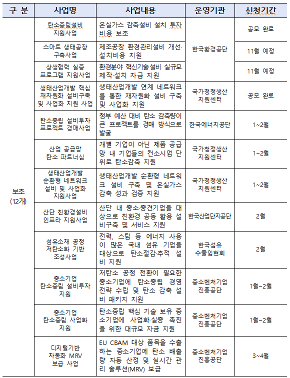 기후에너지환경부(장관 김성환), 산업통상부(장관 김정관), 중소벤처기업부(장관 한성숙)는 각 부처의 산업계 탄소경쟁력 강화 정부지원사업을 한곳에 모아 소개하는 ‘찾아가는 합동설명회’를 연다.