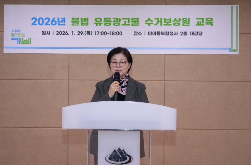 구는 이번 교육을 통해 수거보상원들의 역할과 책임을 명확히 하고, 보다 안전하고 체계적인 정비 활동이 현장에 정착될 것으로 기대하고 있다. 나아가 주민과 함께하는 정비를 지속적으로 추진해, 불법 광고물 없는 깨끗하고 품격 있는 도시환경 조성에 힘쓸 계획이다.