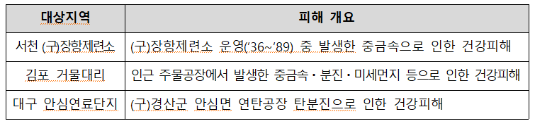 옛 장항제련소 환경오염 피해자 350명에 대한 의료비 및 장의비 지급과 피해등급도 결정함에 따라 2017년부터 시작한 ‘환경오염 구제급여 선지급 사업( 서천 옛 장항제련소, 김포 거물대리, 대구 안심연료단지에서 발생한 환경오염피해자를 대상으로 구제급여를 선지급하는 시범사업)’의 누적 금액은 209여억 원을 넘어섰다.