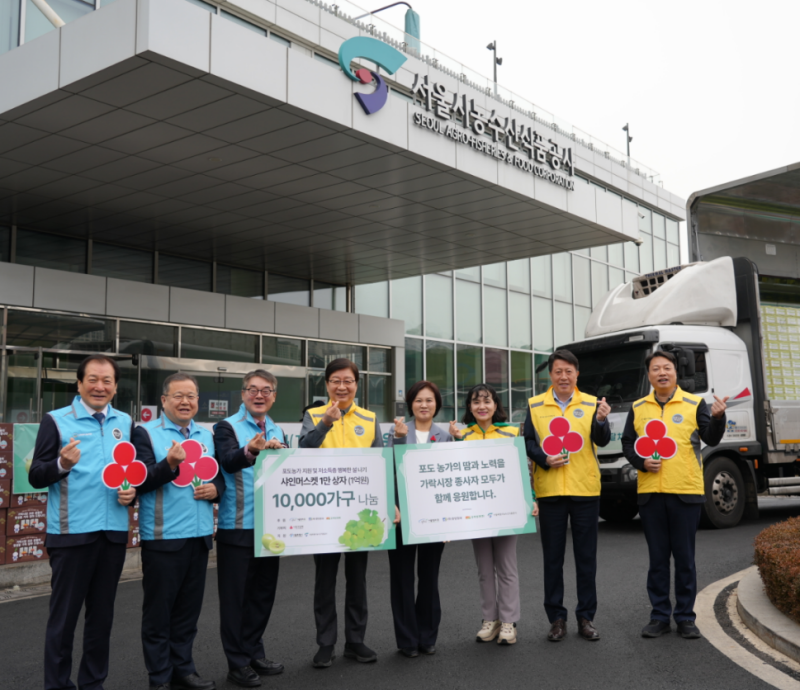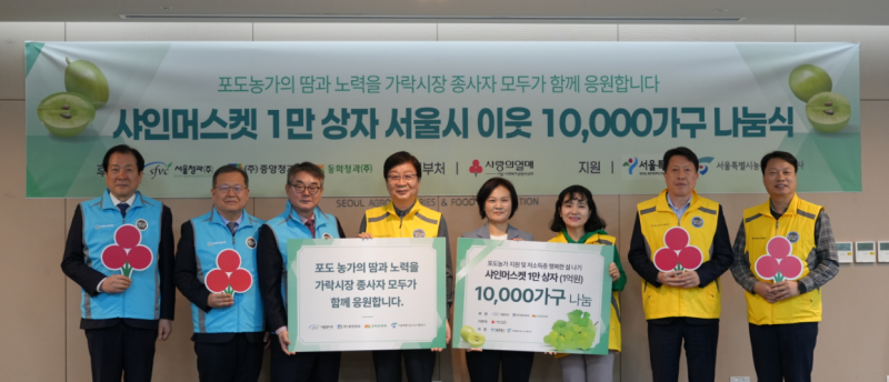 이번 나눔식은 최근 샤인머스켓 수급 불균형과 가격 하락으로 어려움을 겪고 있는 포도 농가를 지원하고, 설 명절을 맞아 저소득층 이웃들에게 따뜻한 온정을 전하기 위해 마련되었다. 특히 본 행사는 가락시장 청과 도매시장법인인 서울청과(주), (주)중앙청과, 동화청과(주)가 자발적으로 기부금 전액을 출연해 의미를 더했다.