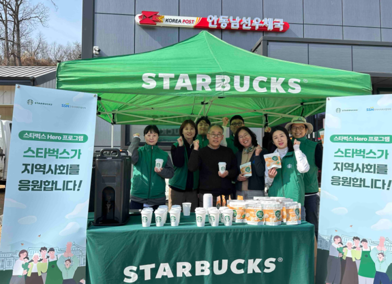 이에 안동 지역에서 근무하는 스타벅스 파트너들이 60년간 지켜온 터에 최근 새롭게 청사를 개청한 회복의 상징과도 같은 남선 우체국을 찾아 지역 주민과 함께 즐길 수 있는 따뜻한 커피 300잔과 간식 400개를 전달했다.