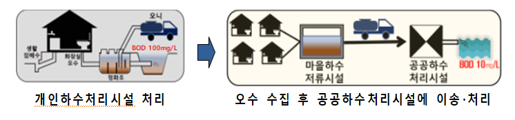 인구 대비 생활계 총인 배출부하량이 많은 하수처리구역 외 지역에는 공공하수처리시설을 신‧증설하고, 시설 설치가 어려운 농촌지역에는 마을 단위로 하수를 집수해 공공처리시설로 보내는 저류시설도 마련함으로써 하수처리구역을 확대한다.