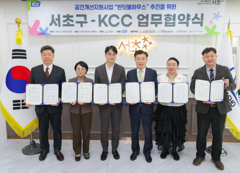 이날 협약식에는 KCC 백승근 상무와 전성수 서초구청장을 비롯해 지역 복지기관 관계자들이 참석해 사업 방향과 운영 계획을 공유했다.