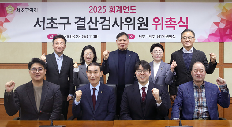 서초구의회(의장 고선재)가 23일 제1위원회실에서 2025회계연도 결산검사위원 위촉식을 열고 본격적인 결산검사에 나섰다고 최근공시를 통해 밝혔다.