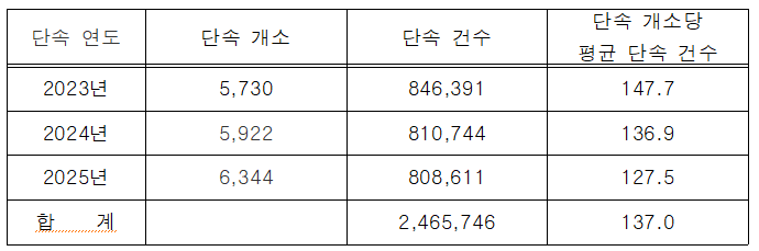 김지향 시의원(국민의힘, 영등포 제4선거구)이 서울시 교통실로부터 제출받은 자료에 따르면, 최근 3년간 교통단속 카메라 설치 개소는 증가했음에도 개소당 불법주정차 과태료 평균 단속 건수는 2023년 147.7건에서 2025년 127.5건으로 지속 감소한 것으로 확인됐다.