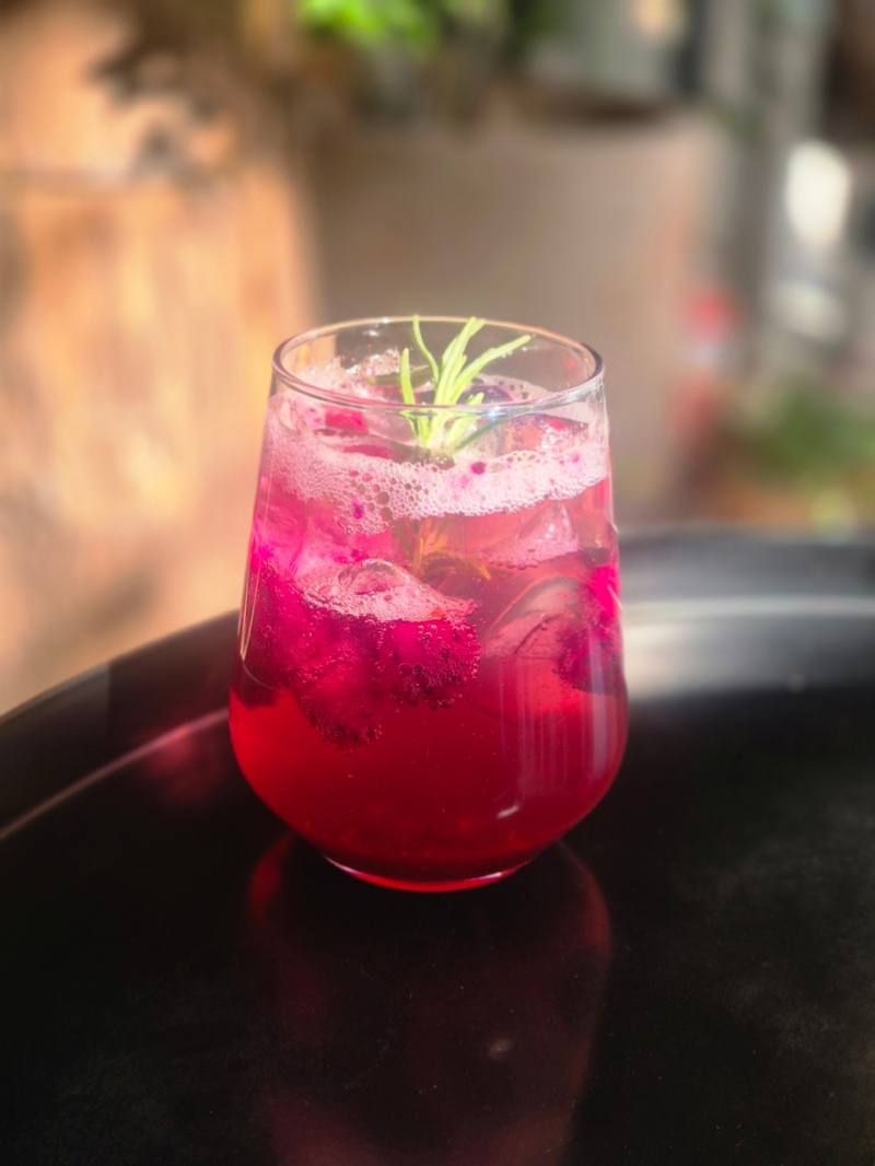 열대과일 적용과와 자두 베이스에 로즈마리 향을 입힌 에이드