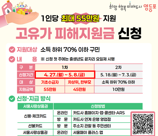 영등포구, ‘고유가 피해지원금’... 최대 55만 원 지원